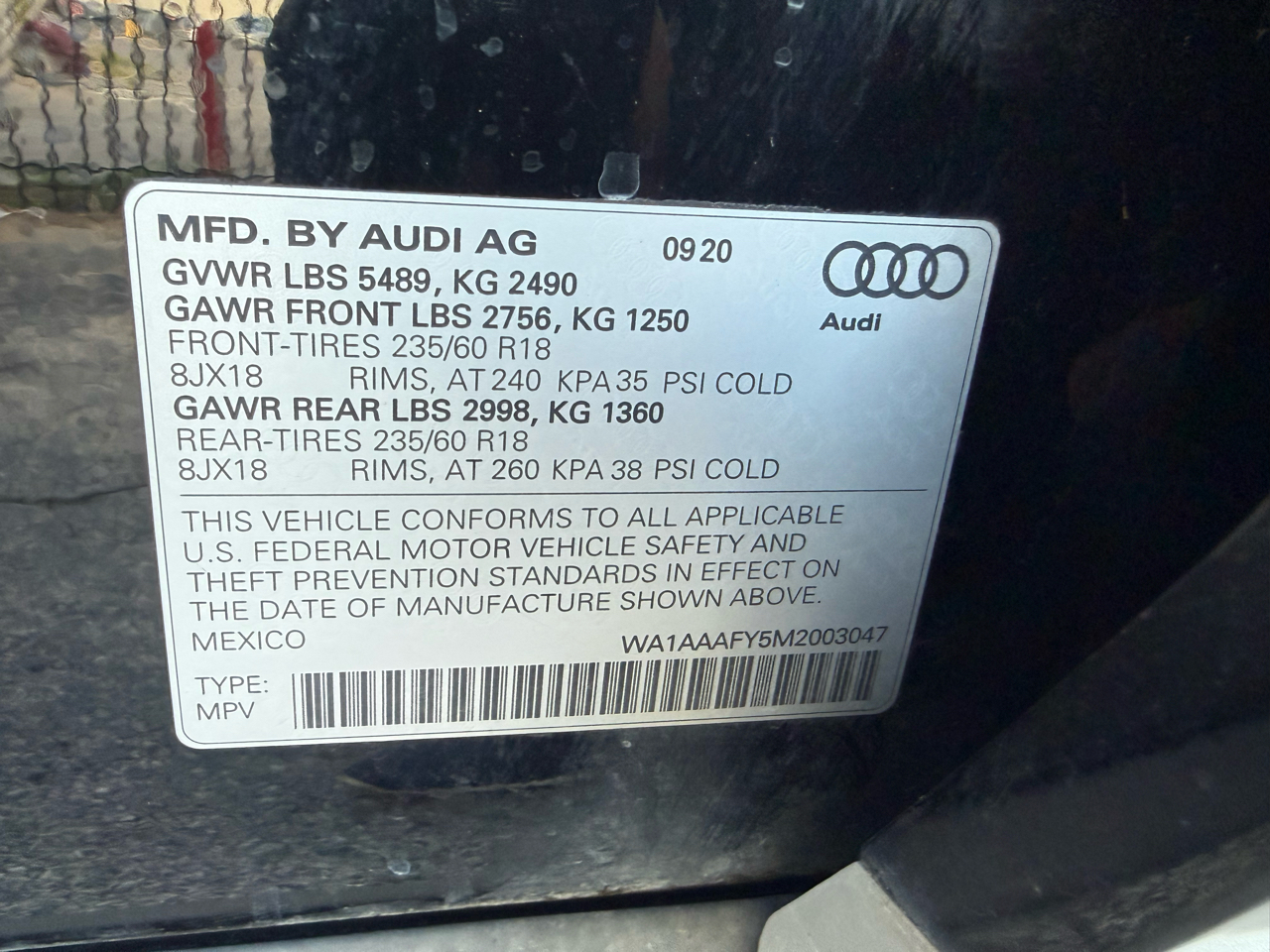 Vin:WA1AAAFY5M2003047